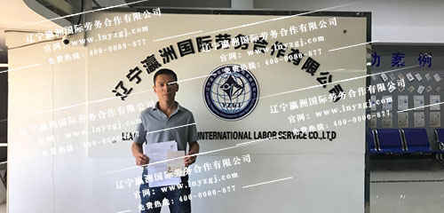 恭喜遼寧大連的于先生已成功入境,你的滿意就是我們******的工作動(dòng)力,瀛洲國(guó)際全體員工祝你在國(guó)外工作順利,錢賺多多!